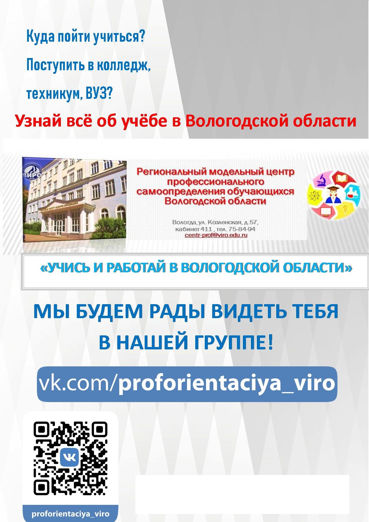 Группа ВКонтакте "Учись и работай в Вологодской области"