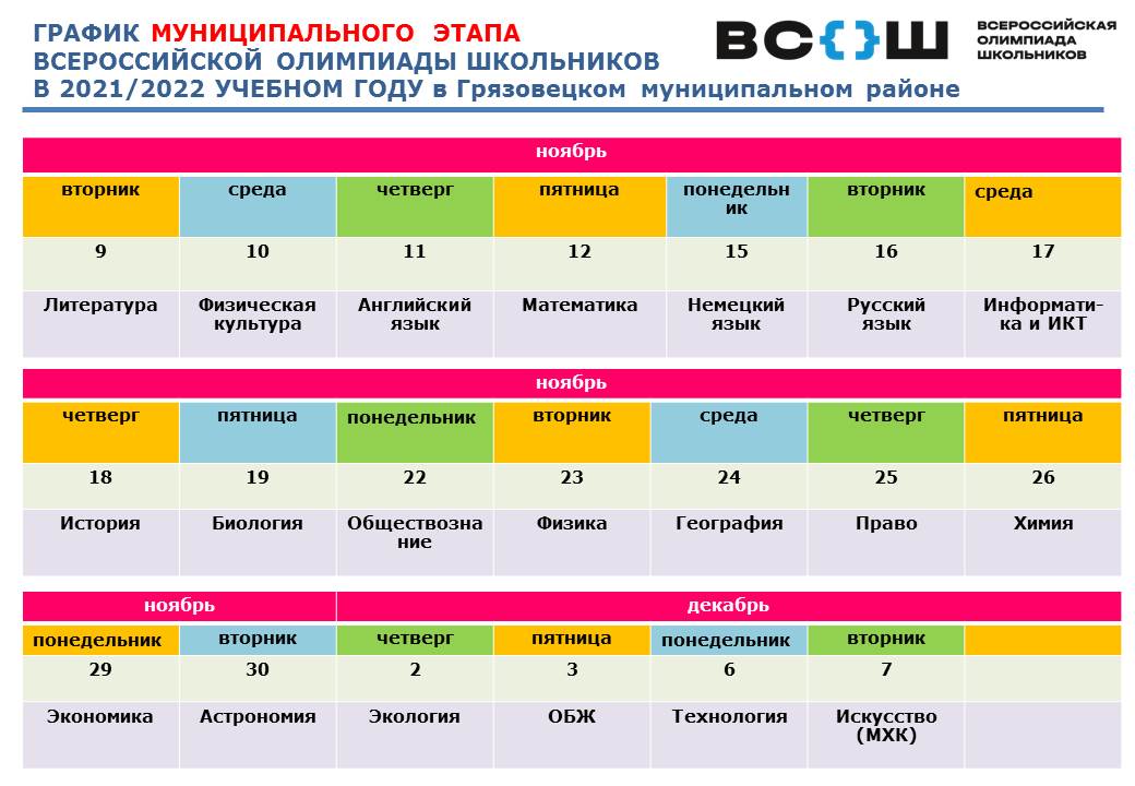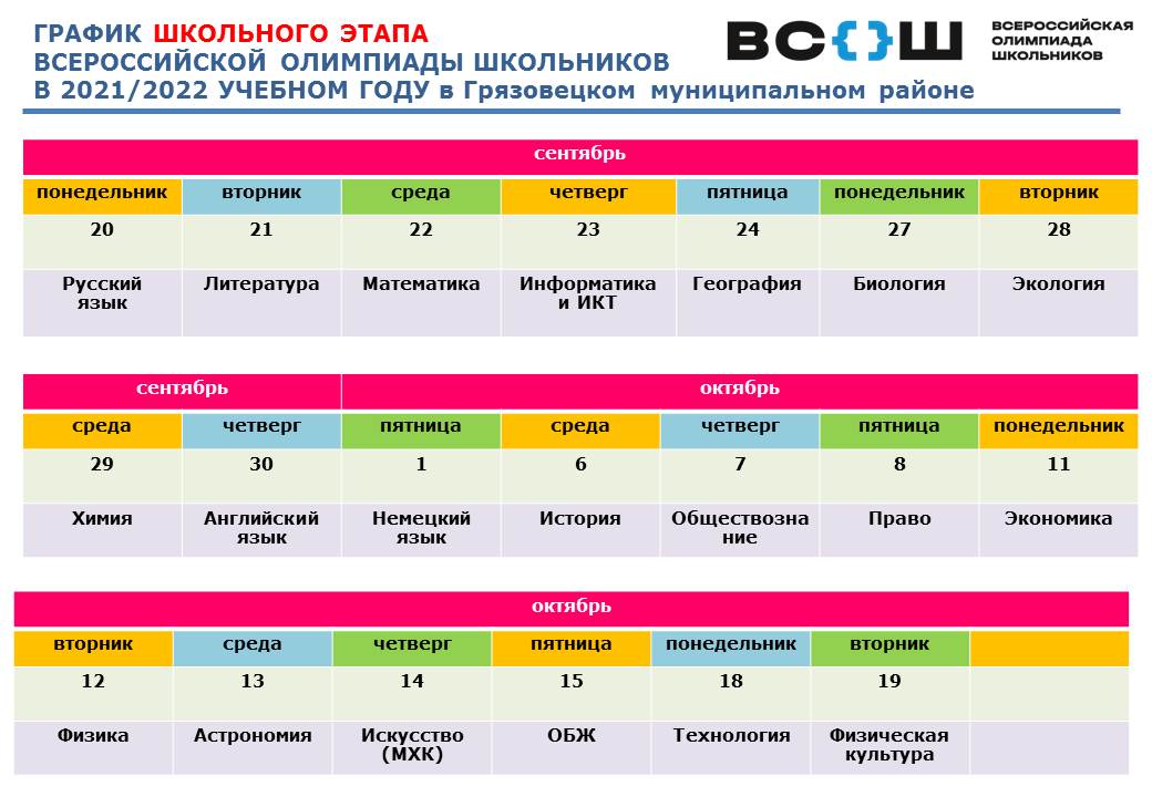 Школьный этап в Грязовецком районе в 2021/2022 учебном году стартует 20 сентября.
