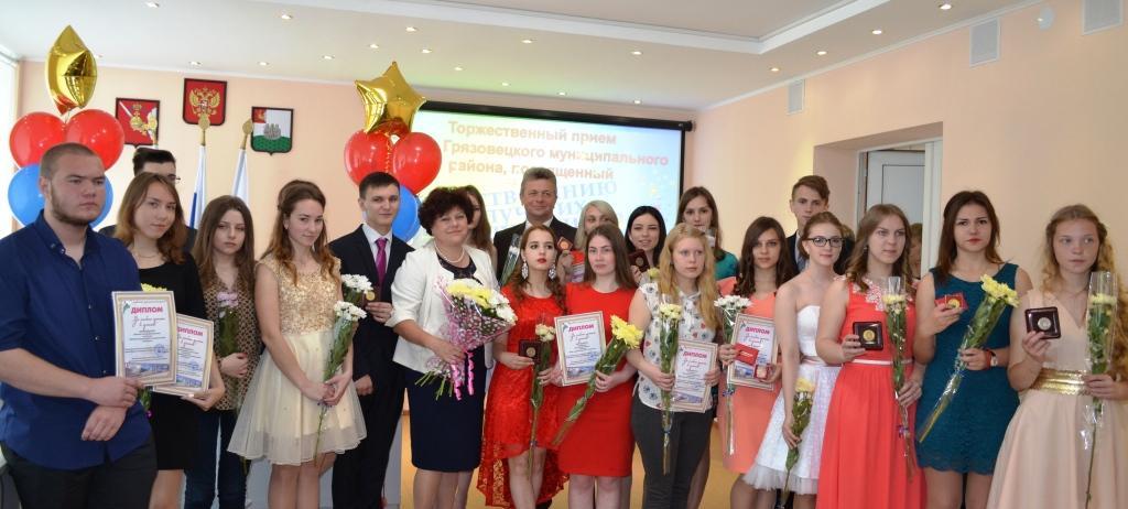 30 июня прошел торжественный прием главы Грязовецкого района, на котором чествовали отличившихся в учении ребят: медалистов, выпускников, получивших высокие баллы во время итоговой аттестации, и студентов, окончивших Грязовецкий техникум с отличием. Из 117 выпускников средних школ района 11 стали медалистами. С напутственными словами и трогательными поздравлениями обратились к выпускникам, родителям и педагогам глава района М.А.Лупандин и начальник Управления образования Т.А.Патракеева. Концертные номера стали украшением праздника.